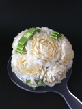 ホワイト系の中でもアイボリー系のお花でまとめたお花ミラーです。グリーンの葉が隙間から見えるクリームホワイトのお花はアンティークの様なやわらかくリッチな印象です。